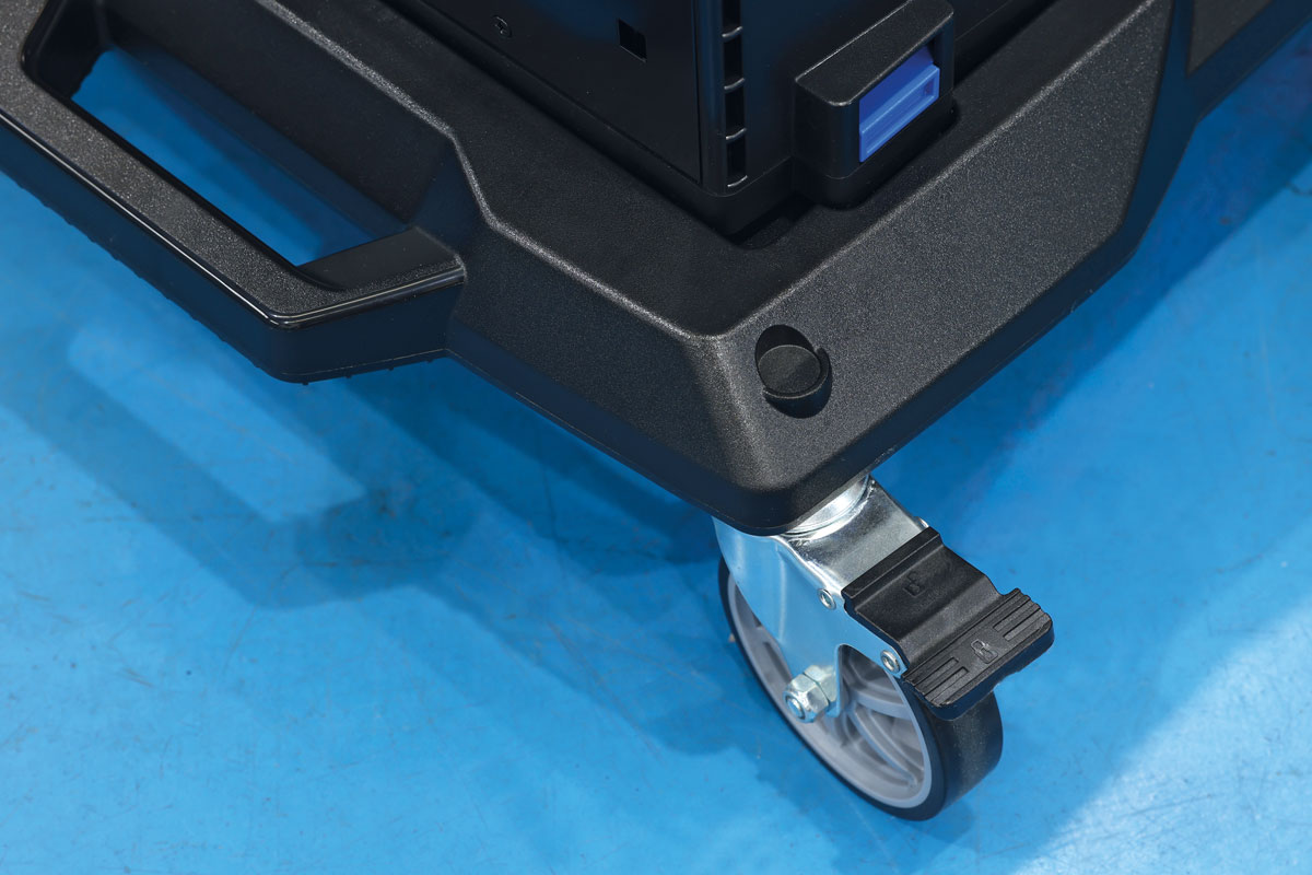 - Hergestellt aus schlagfestem ABS-Kunststoff mit kugelgelagerten Schubladen aus Metall. Außerdem mit seitlicher Ablagefläche für zusätzliches Werkzeug.