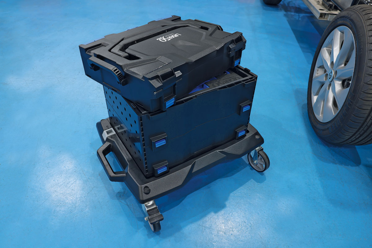 Dieses hochwertige Aufbewahrungssystem bietet eine vielseitige Werkzeugaufbewahrungslösung. Zu seinen Merkmalen zählen unter anderem eine hohe Schlagfestigkeit, Metall-Kugellager-Schubladenführungen und selbstverriegelnde Schubladen. Diese Version bietet eine 78 mm tiefe Aufsatzbox in Kombination mit vier Schubladen. Da sie mit anderen Kombinationen stapelbar und außerdem abschließbar ist, ist sie eine perfekte mobile Lösung. Alternativ kann sie zusammen mit der rollbaren Basisplattform verwendet werden, um Werkzeuge zu einem bestimmten Arbeitsbereich neben dem Fahrzeug zu transportieren.