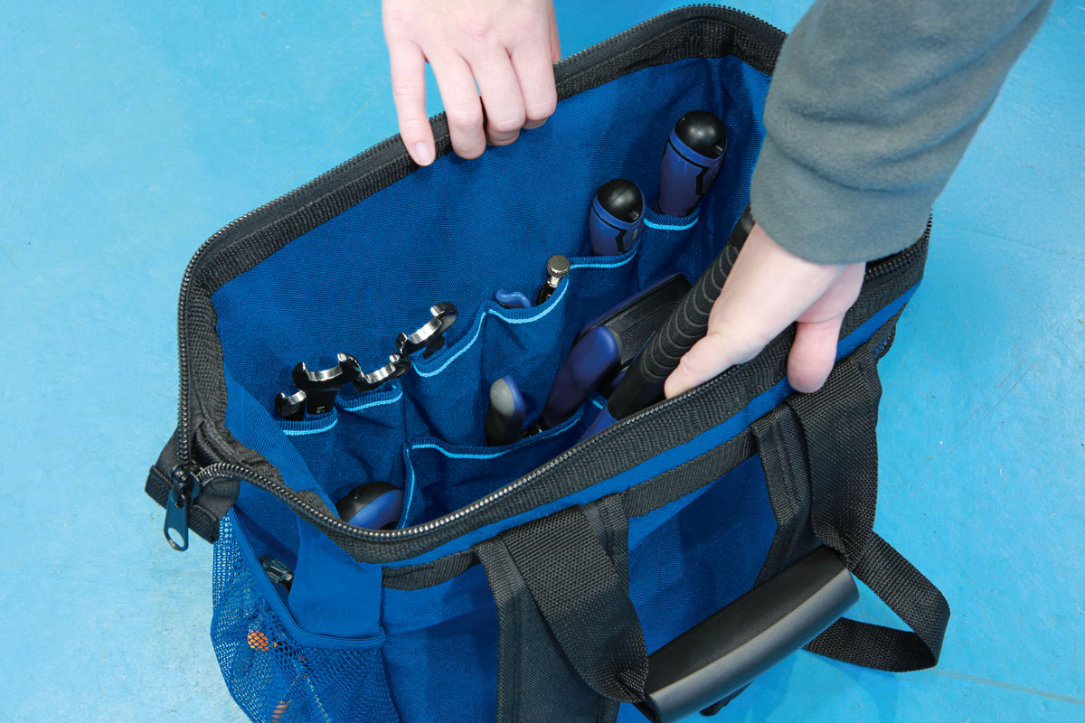 • Also features: 2x zipped & 2x mesh external pockets, 11x elasticated internal pockets, 2x adjustable shoulder straps & 2x standard carrying handles, with raised foot pads & a thicker covering on the base.
