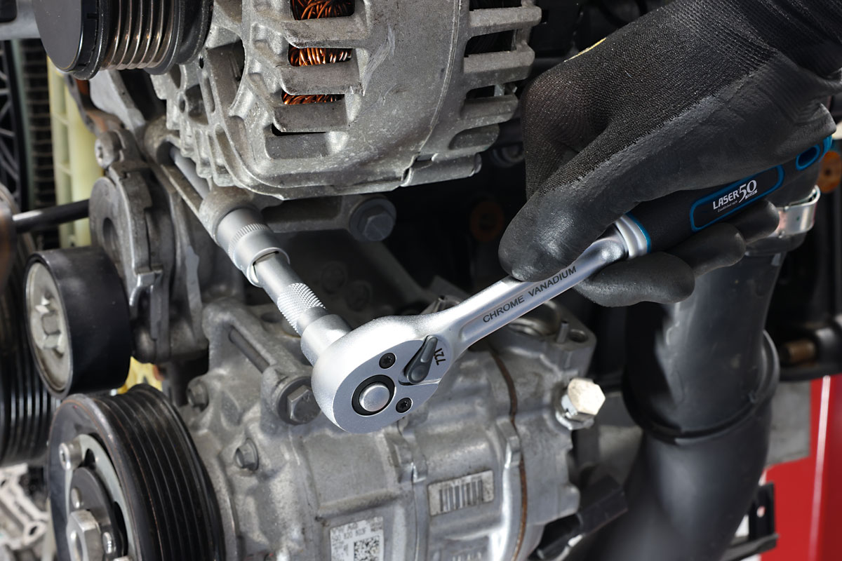 - Eine Ratsche mit 72 Zähnen mit 3/8"-Antrieb mit Hebel-Daumenschalter und komfortablem Griff.