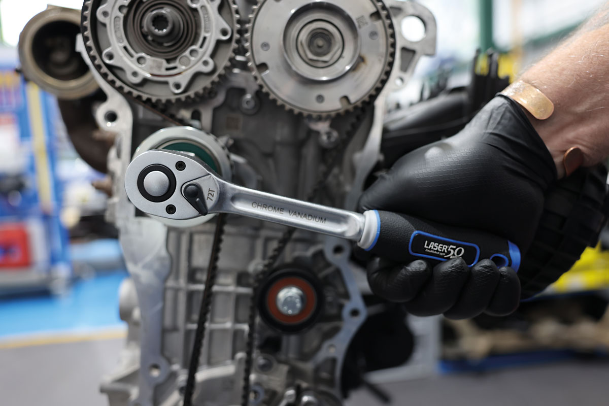 - Eine Ratsche mit 72 Zähnen mit 1/2"-Antrieb mit Hebel-Daumenschalter und komfortablem Griff.