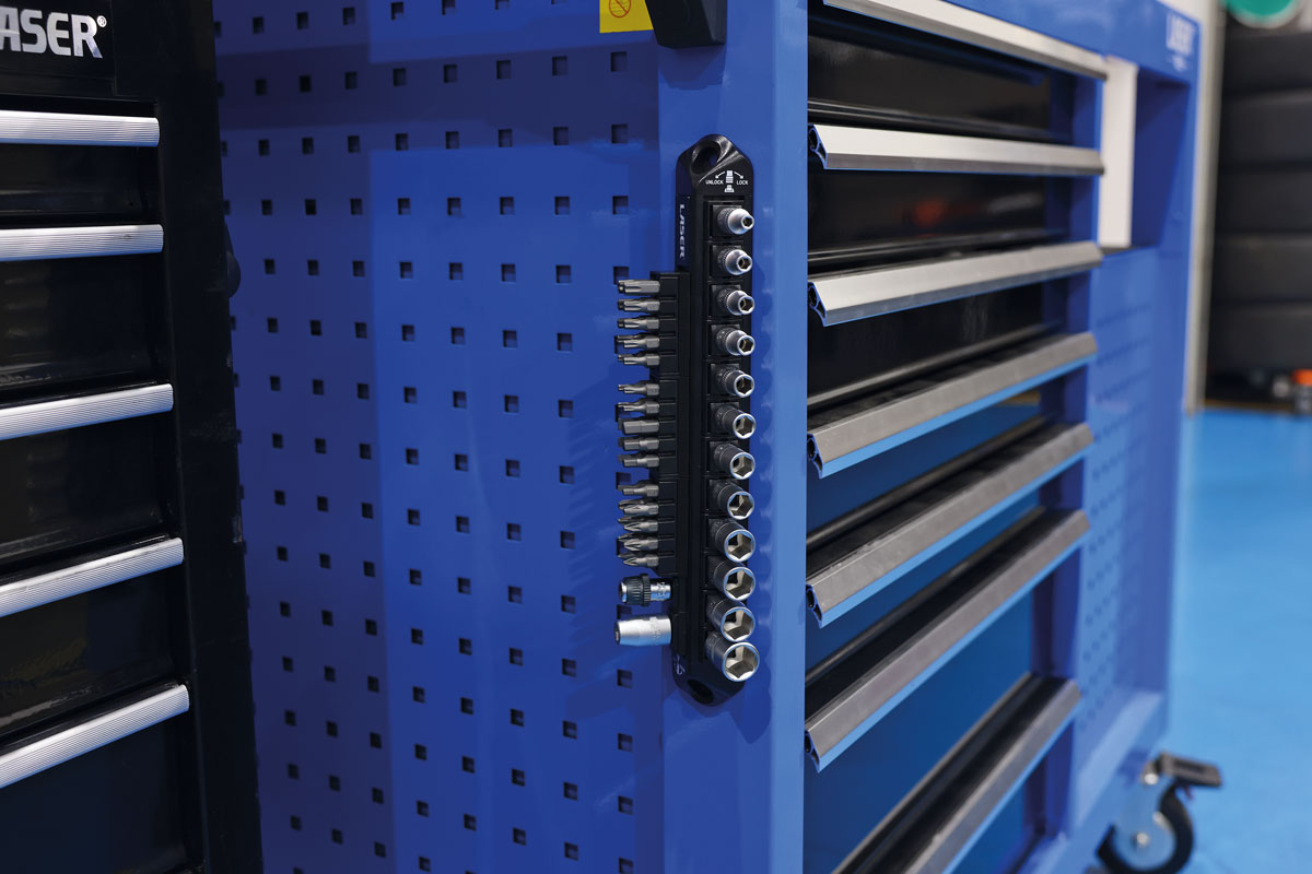 A 44-piece Chrome Vanadium socket set with a hard-wearing, functional satin chrome finish, the Laser 9329 1/4" drive socket and bit set is presented on Laser Tools’ patented LocSoc double-line socket rail with powerful magnets, allowing the set to be secured to any ferrous surface during use or stored neatly in a toolbox. Chrome Vanadium sockets are valued for their high strength, durability and resistance to corrosion, making them ideal for demanding tasks and environments. The added chromium provides rust protection, while the vanadium enhances toughness and wear resistance. Launched to celebrate Laser Tools 50th year and covered by the Laser Tools special 50-year limited warranty (see website for details).