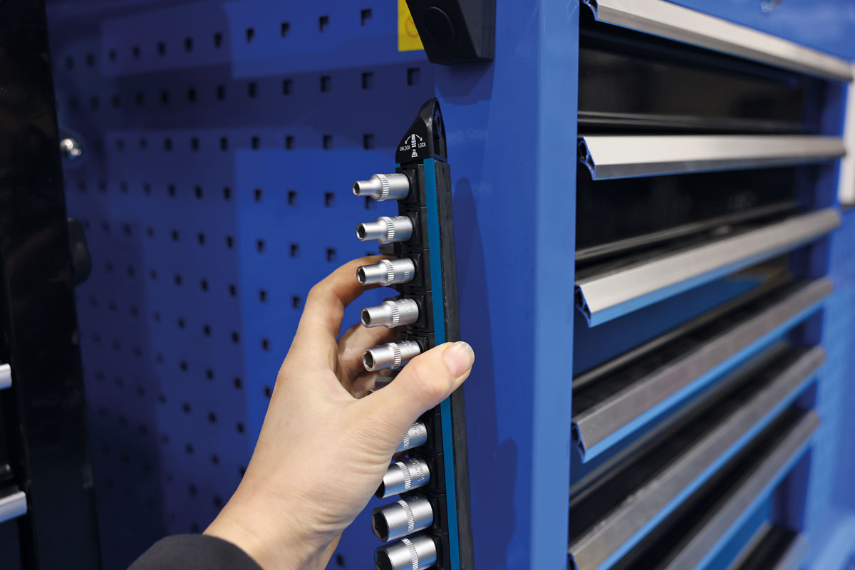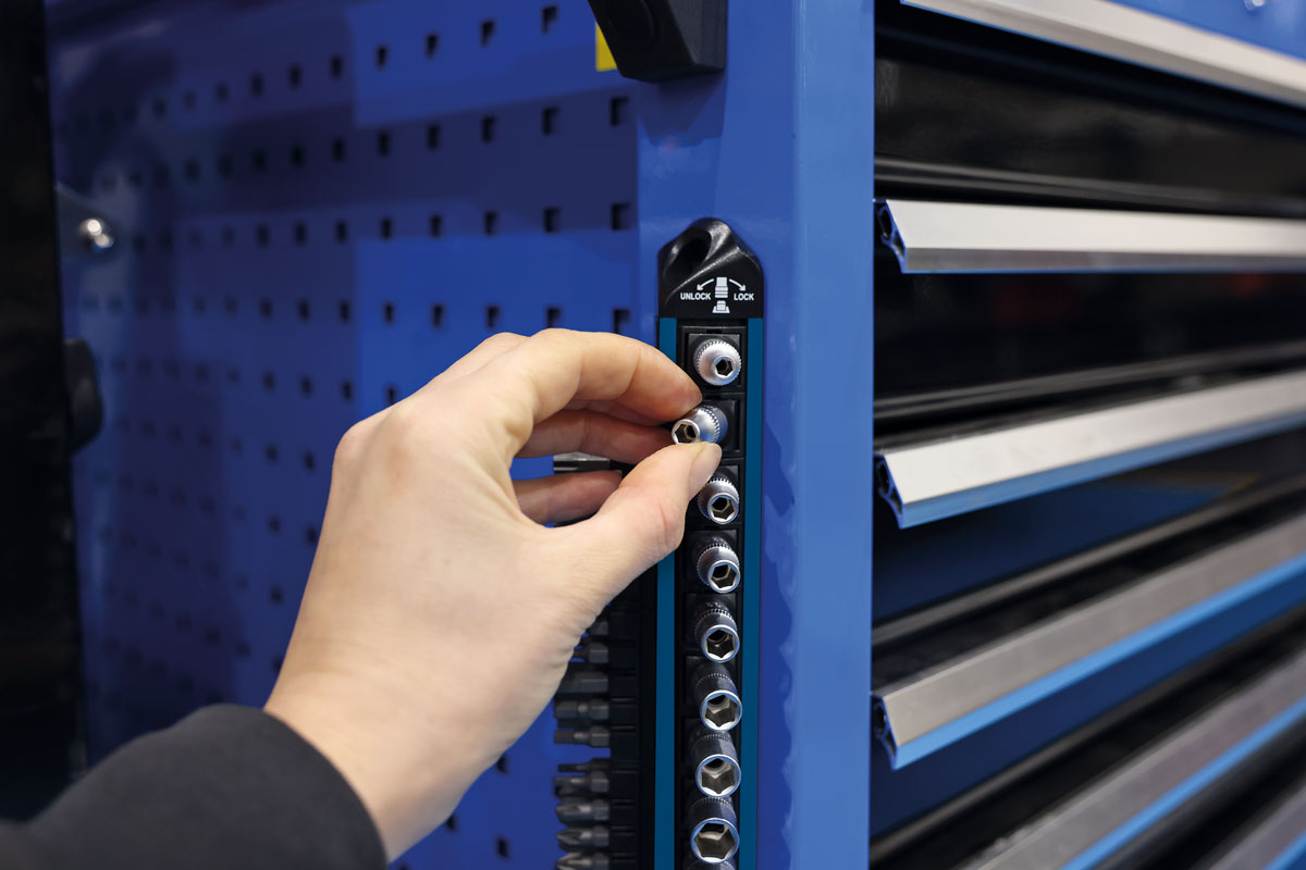 - Fourni sur un rail de rangement magnétique avec mécanisme LocSoc. Longueur : 290 mm.