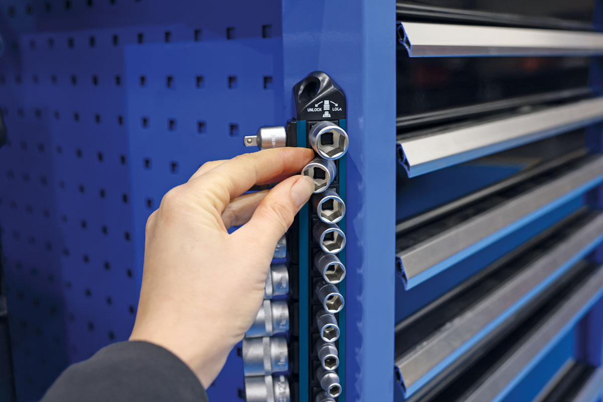 - Fourni sur un rail de rangement magnétique avec mécanisme LocSoc. Longueur : 290 mm.