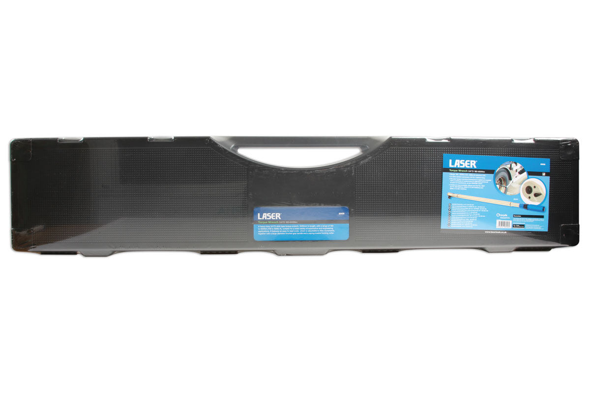 A heavy-duty 3/4"D click type torque wrench, 1220mm in length, with a range of 160 to 800Nm (118.1 - 590.4lb-ft), suitable for a wide variety of automotive and engineering applications. It features an easy to read scale, which is adjustable in 4Nm increments, together with a large diameter knurled grip handle and a spring-loaded locking collar.