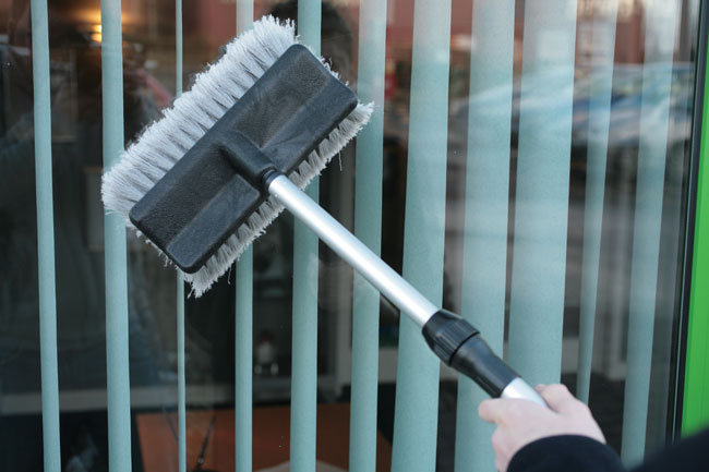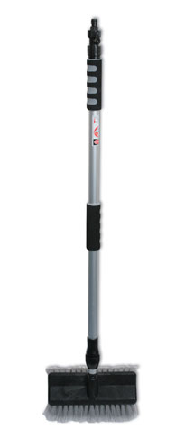 Extending wash brush with flow thru jet head for fast, efficient cleaning. The brush is densely packed with super soft, non-marking bristles for excellent cleaning coverage of wide areas, making it ideal for trucks, conservatories, decking, caravans, PSV, windows and more. It is easy to adjust to the right length using the twist and pull telescopic handle up to a generous reach of 1.7m. The wash brush has a quick connector hose attachment with an on/off valve on the handle for controlled water usage, perfect for cleaning any large, heavily soiled areas.