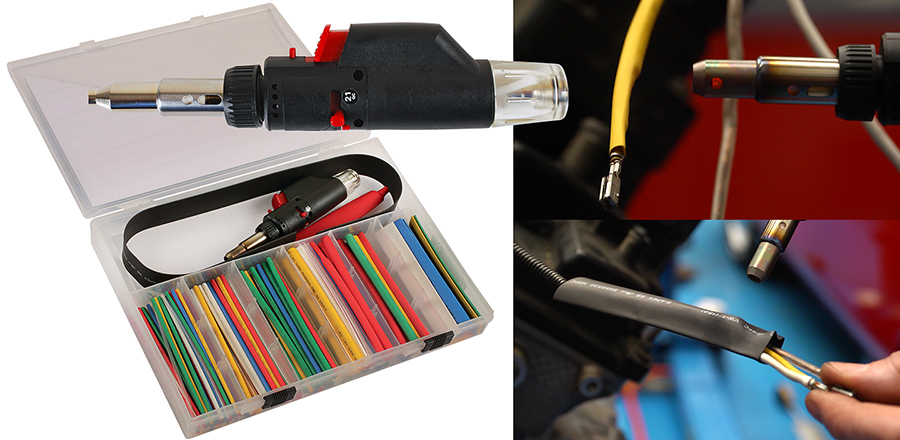 Heat shrink tubing is the ideal way to repair and refurbish worn and cracked insulation of vehicle wiring or to insulate new wiring connections when adding accessories. This new kit from Laser Tools (part number 6076) includes a butane gas powered heat torch as well as a useful and generous selection of heat shrink tubing.