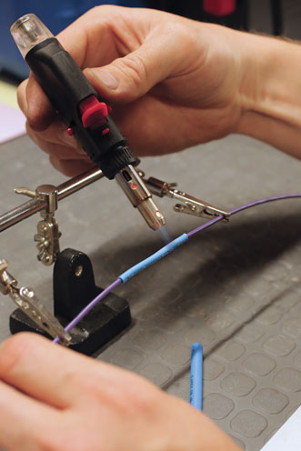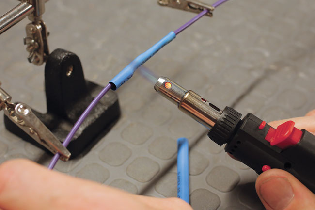 It can be tempting to use a flame on heat shrink tubing, but this heat is uncontrolled and unless great care is taken the tubing can burn and become damaged. The butane powered gas torch in the kit provides a very soft, even heat that is ideal for heat shrink work.