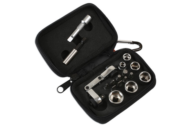 - 6x sockets 1/4"D x single Hex (6pt): 6, 8, 10, 12, 13 & 14mm.