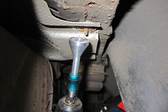 Clamping Washers are used by many manufacturers to hold in place underbody heat shields and sound deadening materials. They are light weight sprung steel washers that push on to and grip a simple, coarsely threaded stud that is permanently attached to the vehicle body. Unfortunately they can be tricky to remove once corroded without breaking them or bending the stud. This useful clamping washer tool (part number 7347) has been specifically developed to make the removal and fitting of these clamping washers and easy and straightforward task.