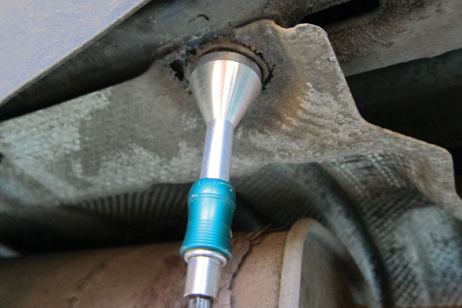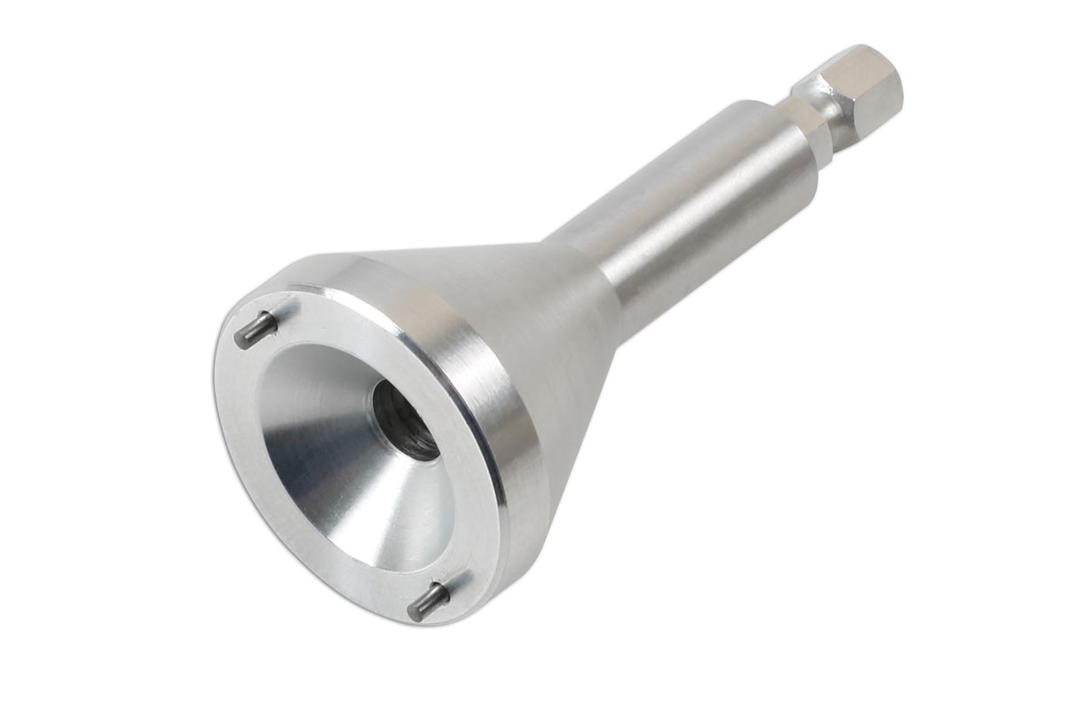 Clamping washers are used by many manufacturers to hold in place underbody heat shields and sound deadening materials. They are lightweight sprung steel washers that push on to and grip a simple coarsely threaded pin that is permanently attached to the vehicle body. Unfortunately they can be tricky to remove once corroded without breaking them or bending the pin. The Laser 7347 has been developed specifically to assist in the removal and fitting of these Clamping Washers. Designed to fit onto the 32mm diameter washers, the 2 steel pins engage with the washer and allow a cordless drill or any 1/4" drive wrench to be used to spin the washer and allow it to “wind” its way off. This method of removal helps avoid breaking the clip, damaging the pin and also helps reduce the chance of the mechanic cutting themselves on the sharp edged clips particularly when they break.