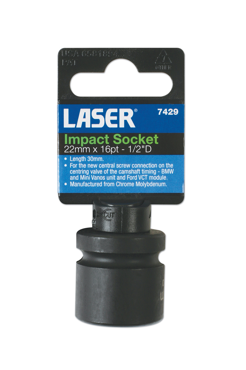 1/2"D impact quality socket for the centring valve of the camshaft timing on BMW MINI Vanos unit and Ford VCT module.