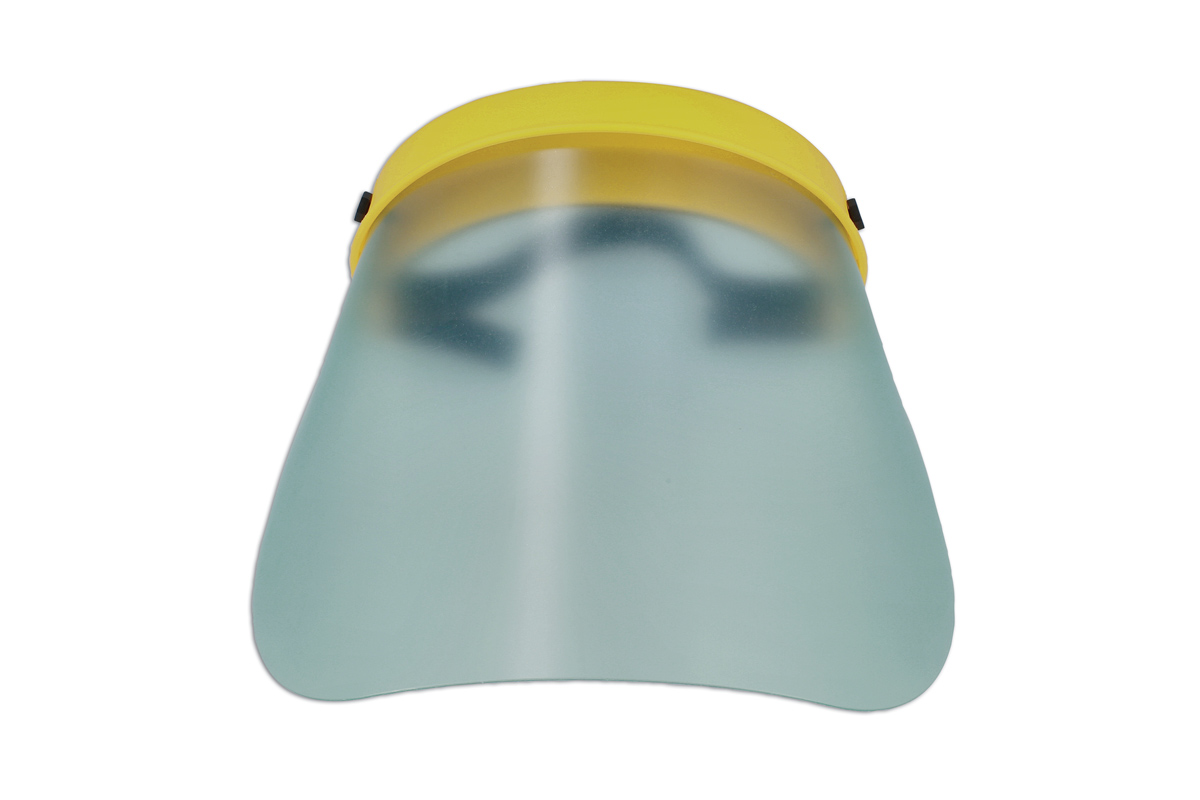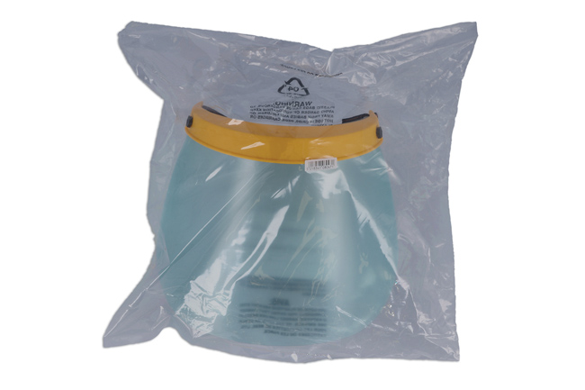 Clear face shield for protection against fluid and particles coming into contact with wearers eyes, nose or mouth. Manufactured to EN166:2001. CE certified.