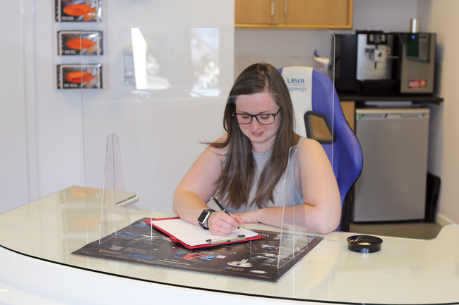 A freestanding sneeze screen made from acrylic designed to protect people from the exposure to respiratory droplets, which are dispensed when coughing, sneezing or speaking. Perfect for retail/trade counters making it safe to serve customers, without needing additional PPE.