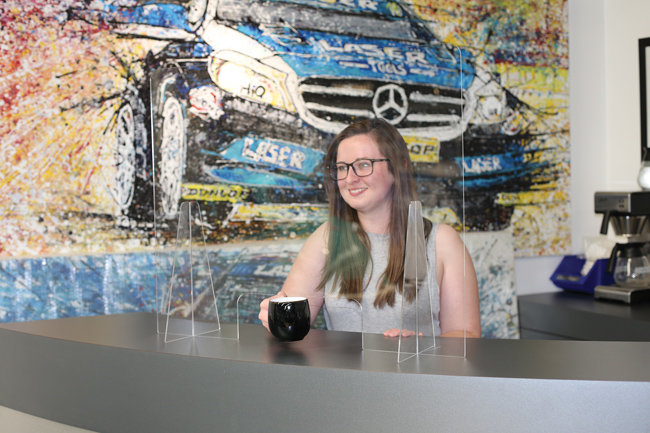 • Designed to protect people from the exposure to respiratory droplets without needing additional PPE of a face shield or face mask.