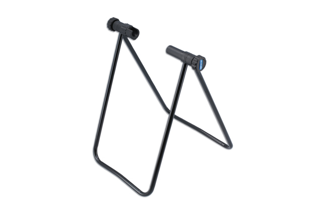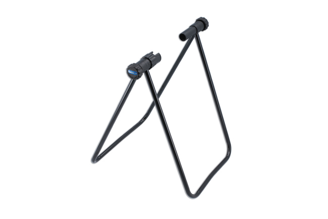 "This adjustable bike stand holds onto the rear wheel fixings, supporting the bike in an upright position, providing a safe way to store or display a bicycle without having to lean it against anything else, as well as providing a simple and steady work stand. The rear wheel can be set so that it is raised off the ground, enabling the rear wheel to be rotated allowing the gears to be checked and adjusted, chain and drivetrain cleaned and the rear wheel inspected to see if it is running true."