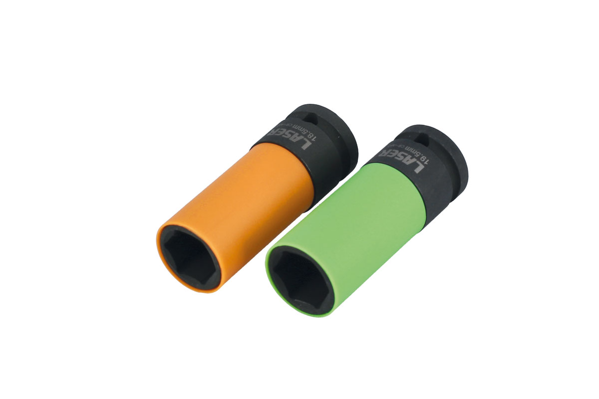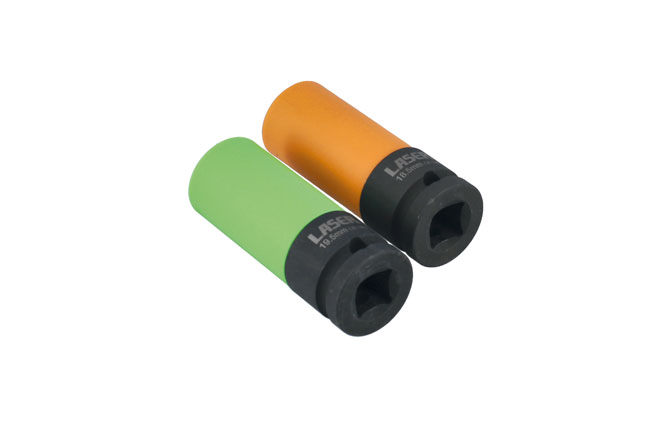 - Thin walled sockets with protective sleeve to prevent damage to alloy wheels.