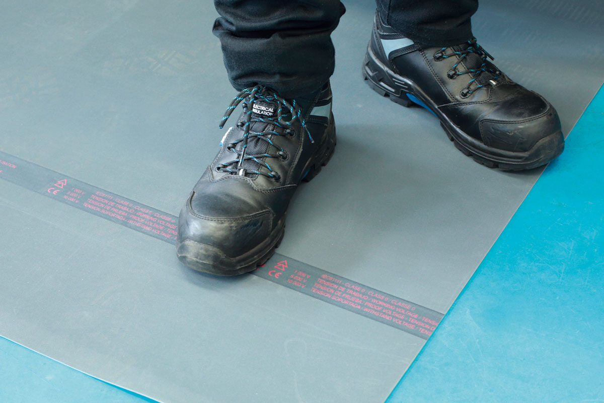 Flammhemmende, säure- und alkalibeständige, elektrisch isolierende Bodenmatte, 1 m² groß, Klasse 0 für Arbeitsspannungen bis zu 1 kV, geprüft nach IEC 61111, dadurch geeignet für den Einsatz in der Automobilindustrie, einschließlich Arbeiten an Elektro- und Hybridfahrzeugen. Langlebige Konstruktion, 1,5 cm dick, mit fein geriefter, rutschfester Unterseite für hervorragenden Halt, Oberseite in Textiloptik. Ein unverzichtbares Sicherheitselement für die Werkstatt, mit Nylontasche für die Aufbewahrung.