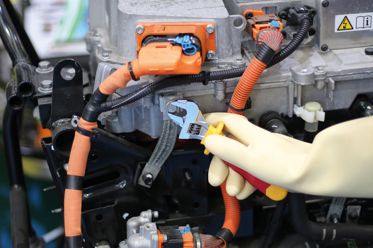 Isolierter, verstellbarer Schraubenschlüssel mit leicht ablesbarer Messskala, die eine Voreinstellung der Schlüsselweite mit einem Bereich von 0 bis 30 mm ermöglicht, sowie zweifarbigem, isoliertem Softgrip-Griff mit Rutschschutz. Hergestellt nach IEC60900-Normen für den sicheren Einsatz an spannungsführenden Stromkreisen bis zu 1000 VAC und 1500 VDC. Ideal für Techniker und Mechaniker, die an Hybrid- und Elektrofahrzeugen arbeiten, sowie für professionelle Elektriker und Installateure.