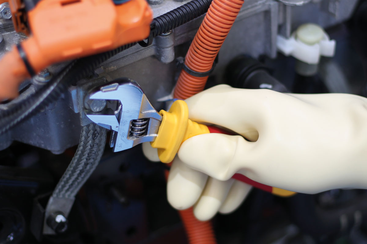 An insulated adjustable spanner featuring an easy to read measuring scale, to allow for the width to be pre-set, with a range of 0 to 30mm, together with a two colour soft grip insulated handle with slip guard. Manufactured to IEC60900 standards, for safe operator use on live circuits up to 1000v AC and 1500v DC. Suitable for use by technicians and mechanics working on hybrid and electric vehicles, together with professional electricians and installers.