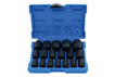 - Der Werkzeugsatz umfasst: Einzelsechskant-Einsätze (6-Pkt.) Größen; 10, 12, 13, 14, 16, 17, 18, 19, 21, 22, 24, 27, 30 und 32 mm, Länge 38 mm. 10, 12, 13, 14, 16, 17, 18, 19, 21, 22, 24, 27, 30 und 32 mm, Länge 78 mm. Radmuttern-Steckschlüsseleinätze. Größen; 17, 19 und 21 mm, Länge 85 mm.