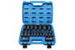 A comprehensive 1/2"D impact socket and bit set that includes both regular and deep sockets in sizes ranging from 10mm to 32mm. It also features Star* sockets together with hex, Star* and splines bits along with an extension bar, socket convertors and a ball type universal joint. All manufactured from impact grade chrome molybdenum, with a black phosphate finish and a blue colour ring, and supplied in a robust blow mould carry case.