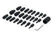 - Inhoud van de set: Enkele zeskantdoppen (6 pt). Maten; 10, 12, 13, 14, 16, 17, 18, 19, 21, 22, 24, 27, 30 & 32 mm x 38 mm lang. 10, 12, 13, 14, 16, 17, 18, 19, 21, 22, 24, 27, 30 & 32 mm x 78 mm lang. Wielmoerdoppen. Maten; 17, 19 & 21 mm x 85 mm.
