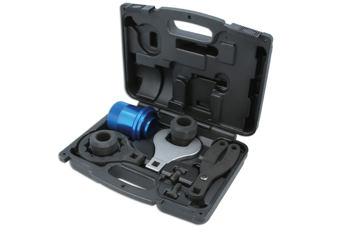 - Kit includes: 50mm spanner, 65mm multi point ring spanner, pinion socket (34 spline), pinion socket (37 spline), flange holding tool & seal fitting drift.