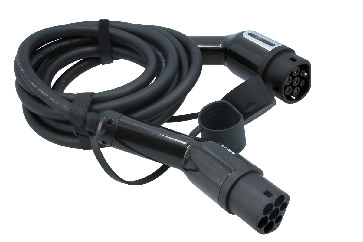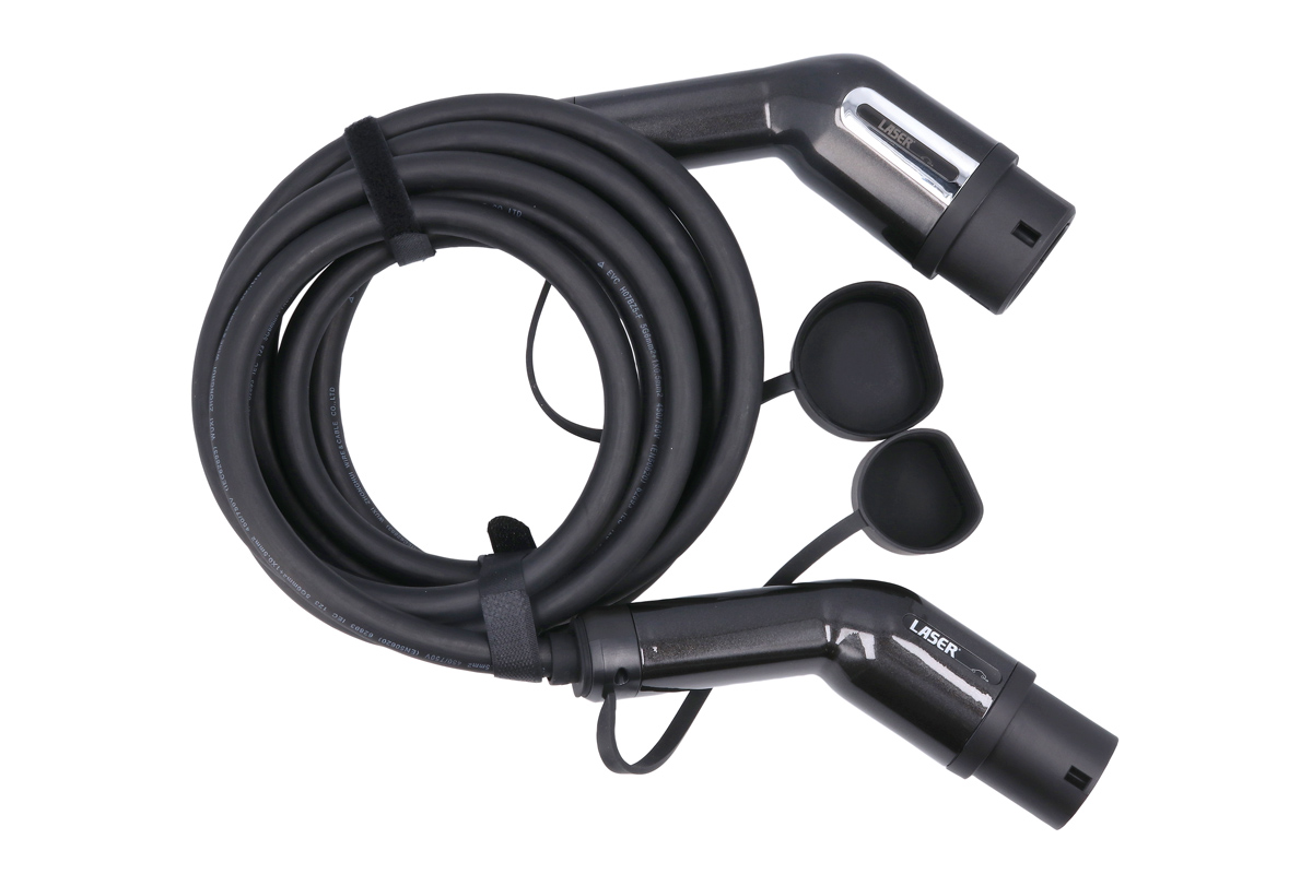 - 5m long BEV/PHEV charging cable, with Type 2 vehicle plug (female) to Type 2 charger plug (male), complete with carry bag.