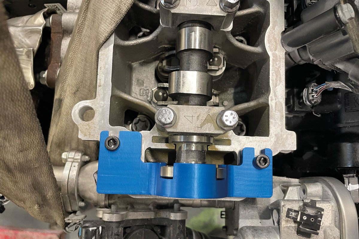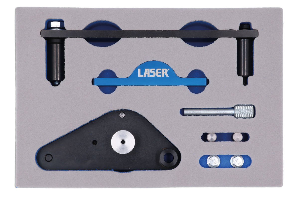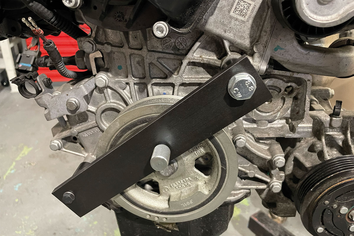Steuerzeiten-Einstellwerkzeugsatz für den neuesten Dreizylinder Fiat 1,0-l-Benzinmotor, wie er in Fiat-Mildhybrid-Elektrofahrzeugen (MHEV) verwendet wird.