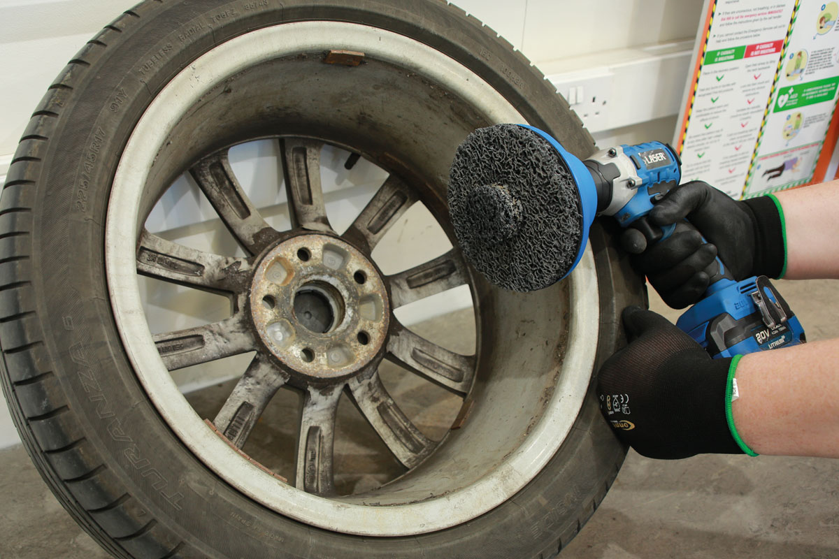 - Ideal for fast effective cleaning of inner wheel matting surfaces. Features a composite body, metal 1/2"D insert, together with a hook & loop abrasive pad fixing.