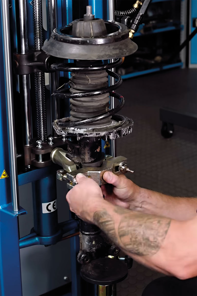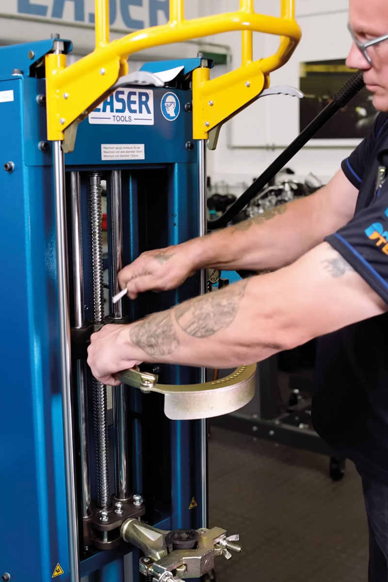 Hydraulic control for safer MacPherson strut work — new spring compressor from Laser Tools
