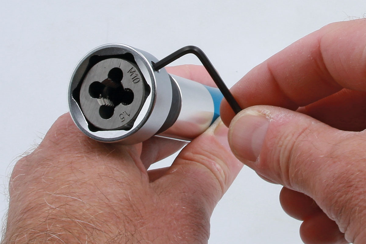 Conçu pour être utilisé avec n'importe quelle perceuse-visseuse sans fil à embout hexagonal de 1/4", ce kit comprend un tube de 315 mm de long et un jeu de douilles à 6 pans de type traversant avec un hexagone externe de 14 mm. Les douilles se montent sur le tube d'entraînement, ce qui permet de faire passer les écrous le long des goujons et des boulons à filetage long. Le dispositif d'entraînement comprend un cran d'arrêt et un ressort de maintien, afin d'empêcher l'écrou de tomber lors d'une utilisation verticale ; un manchon rotatif, qui permet de le positionner et de le maintenir en place pendant l'utilisation ; et un mandrin à serrage rapide.