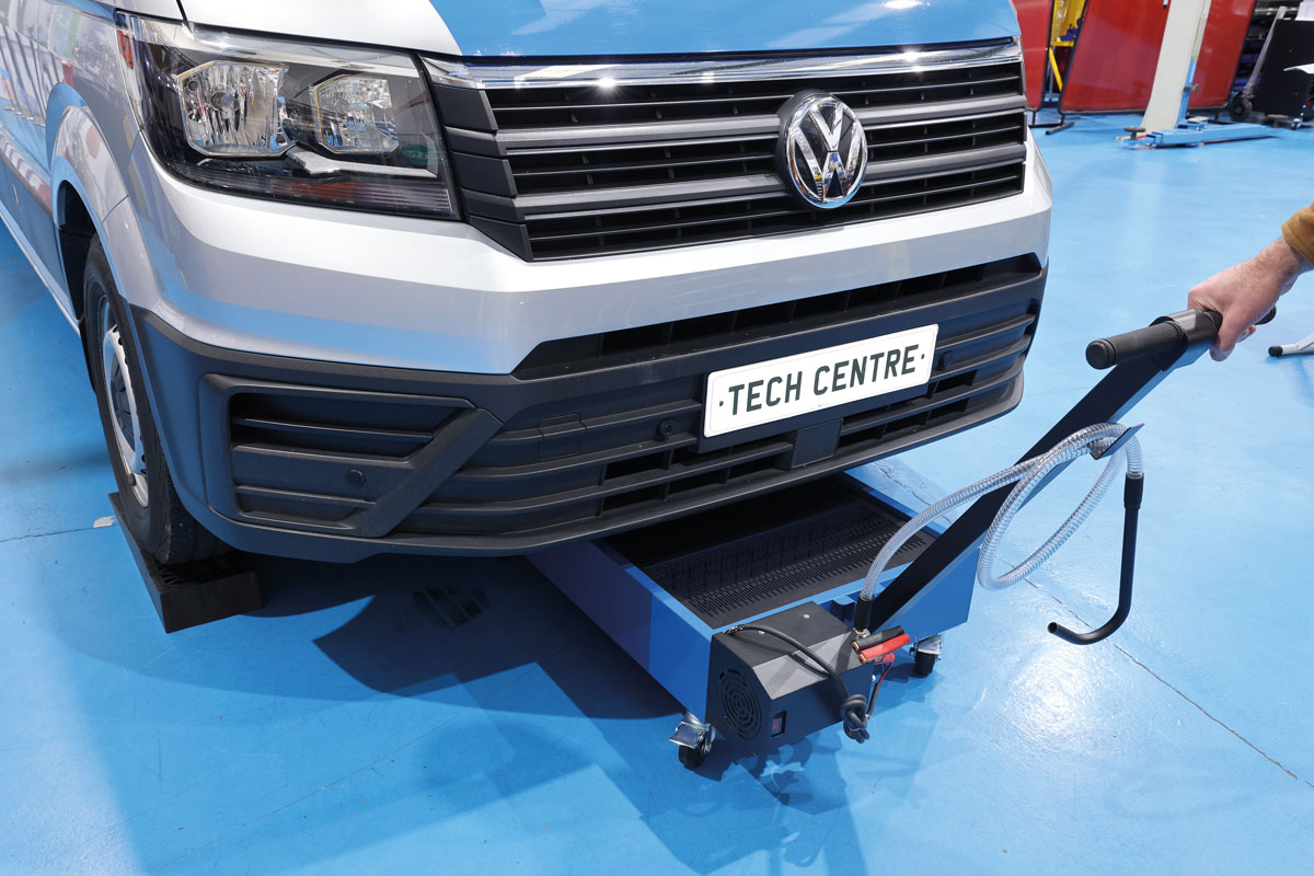 Ein niedriger Ölablass, der unter hohe Fahrzeuge wie Nutzfahrzeuge und große Transporter geschoben werden kann und mit einer elektrischen Pumpe zum Abpumpen von Altöl ausgestattet ist. Verfügt zudem über 4 Schwerlastrollen, 2 fest und 2 schwenkbar mit Bremsen, für einfaches Manövrieren.