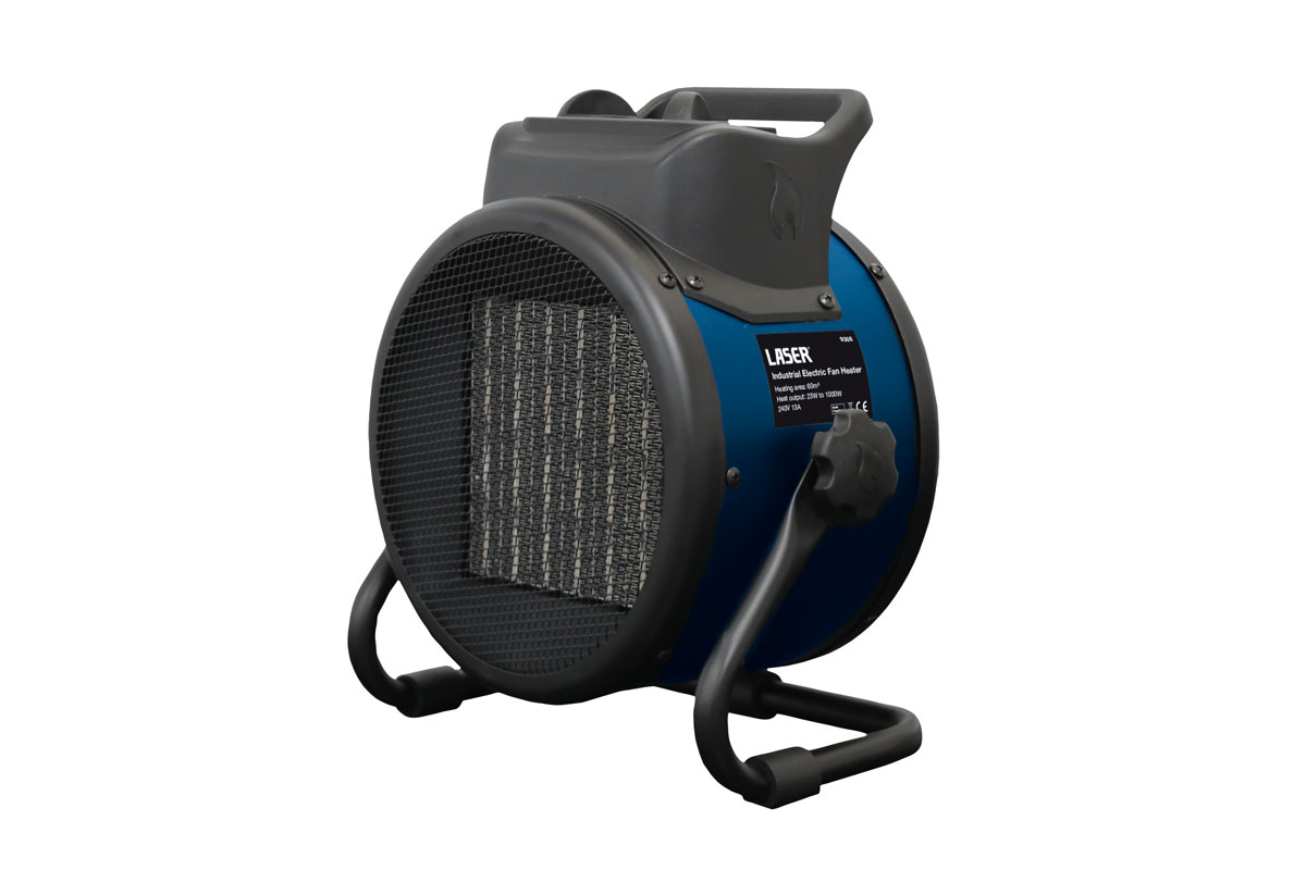 The Laser 9308 compact workshop electric fan heater is designed to be used to heat small sized workshop areas of around 60 cubic meters. Ideal for small workshops, shops and trade counter spaces. Fitted with a robust carry handle and steel tube feet. Mains powered giving up to 3kW of dry heat. Angle adjustable through 90° from level up.