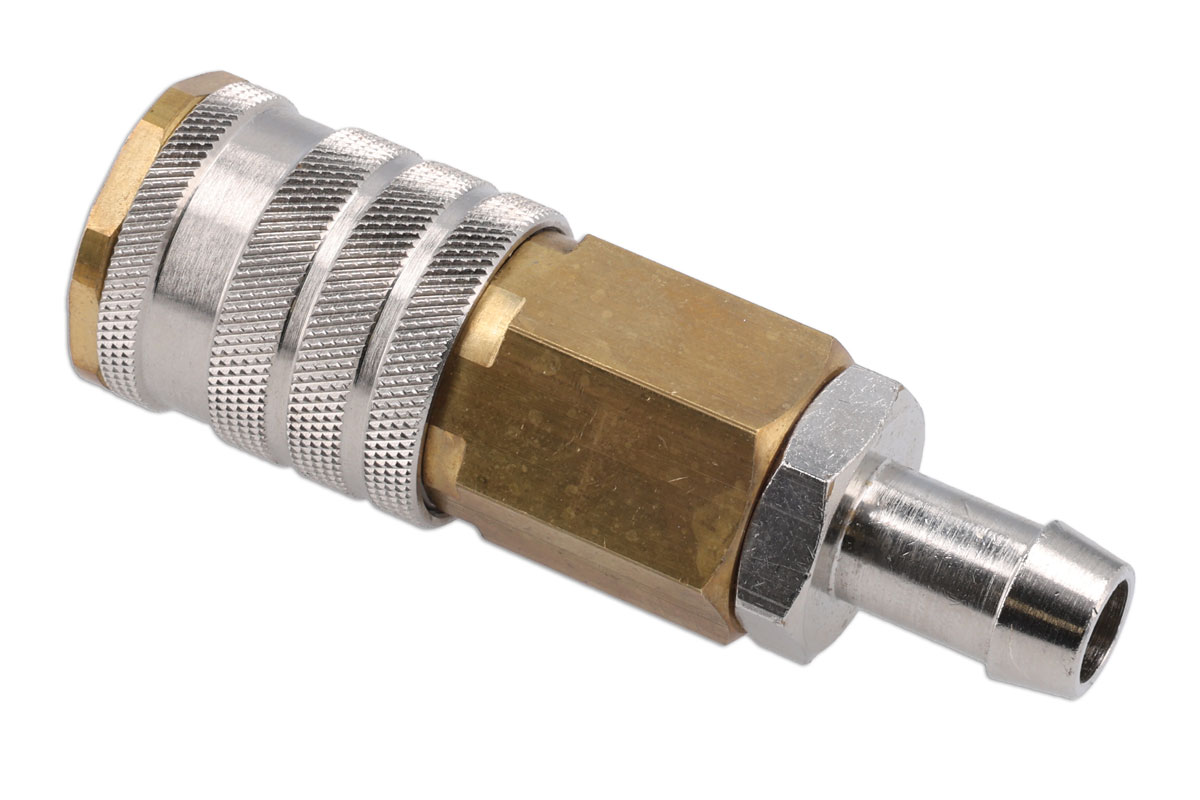 A radiator quick coupler designed for use on Euro 6 compliant Scania trucks. This special adaptor connects to the cooling system in line with manufacturer instructions, allowing draining and refilling without causing air locks.