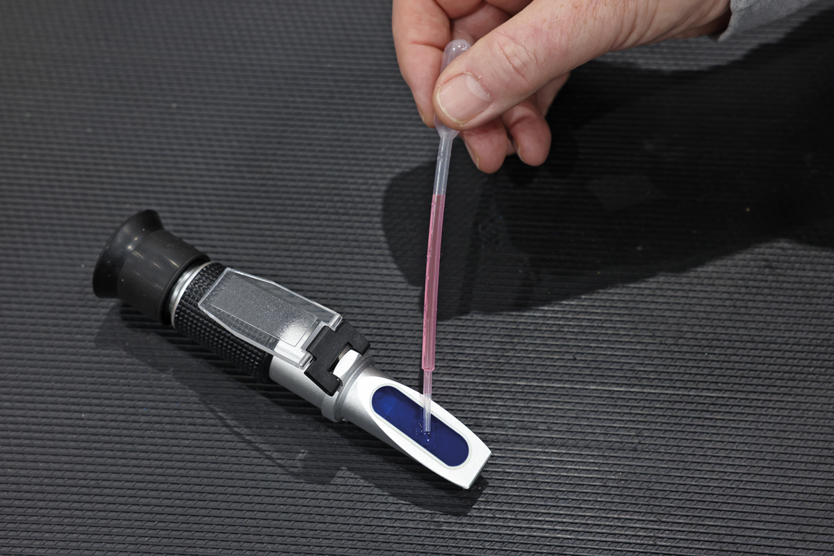 Nouveau kit réfractomètre pour mesurer la concentration d'antigel, de liquide de batterie, de liquide lave-glace et d'AdBlue*. Le kit comprend une pipette pour recueillir les liquides et un tournevis de précision pour la vis d'étalonnage, le tout fourni dans un coffret de rangement en plastique résistant.