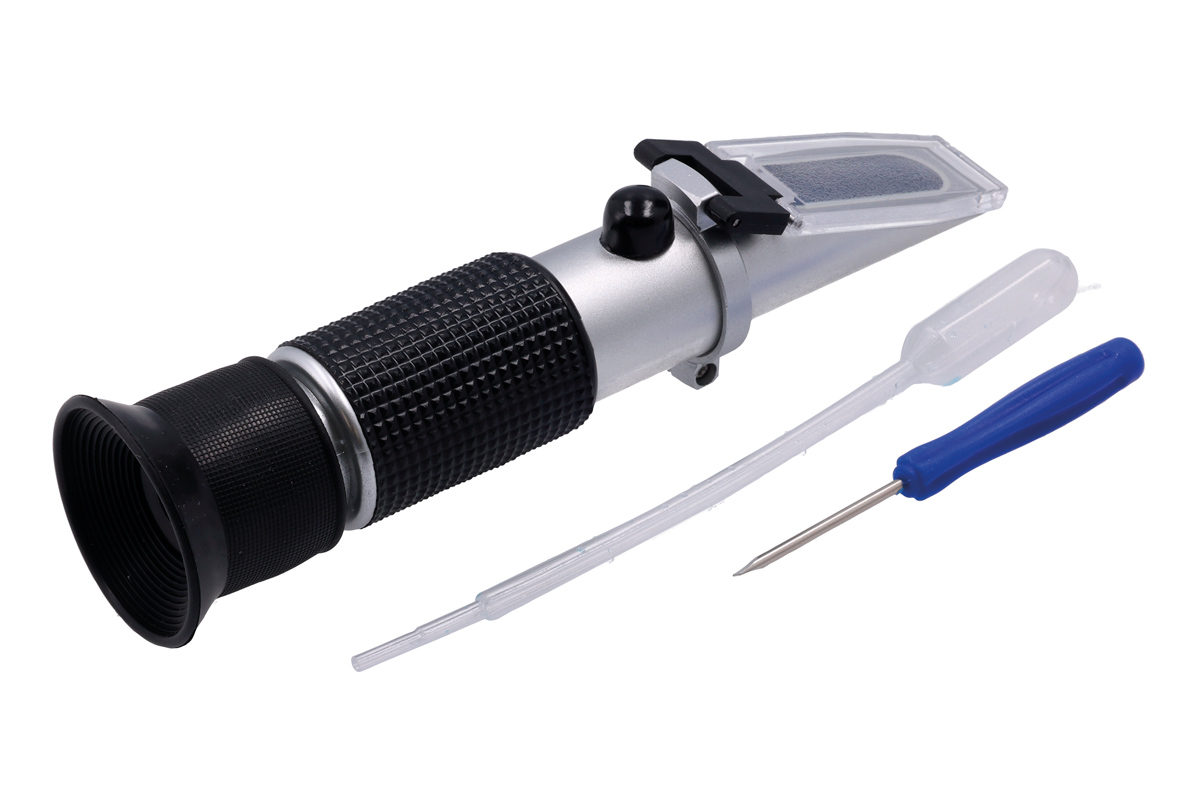 A new to range refractometer kit for measuring the strength of antifreeze, battery fluid, Windscreen washer fluid, and AdBlue®. The kit includes a dropper for collecting fluids and a precision screwdriver for the calibration screw, all supplied in a durable plastic storage case.
