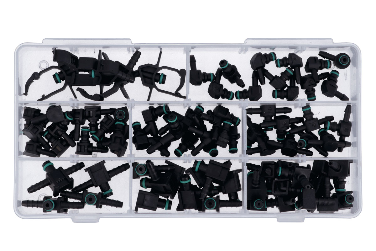 - Bevat 8 populaire, veelgebruikte connectoren voor de brandstofleiding.