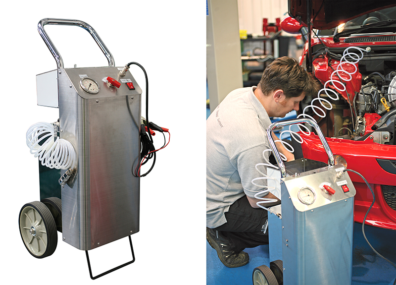 A portable, self contained, pressurised brake bleeder which is powered from the vehicle's 12V battery - the output pressure is adjustable up to a maximum of 36psi (2.5 bar). Suitable for professional workshop use and can also be used on hydraulic clutch systems.
