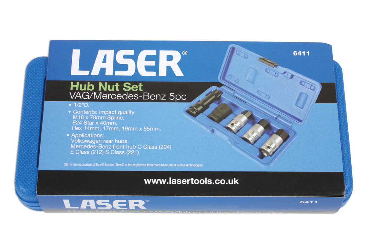Specialist set of tools for Mercedes-Benz and Volkswagen hub applications.