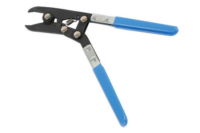 260mm long CV boot clamp pliers for use on earless clamps. Each jaw has a square end designed to crimp the clamp without cutting it. The spring loaded handle mechanism allows just the right amount of force to be applied for a neat, secure fixing. The pliers have plastic dipped handles for comfort and ease of use. Suitable for securing axle boots on a wide range of vehicles including Audi, BMW, Chrysler, Ford, GM, Honda, Mazda, Mercedes-Benz, Nissan, Porsche, Vauxhall/Opel and VW.