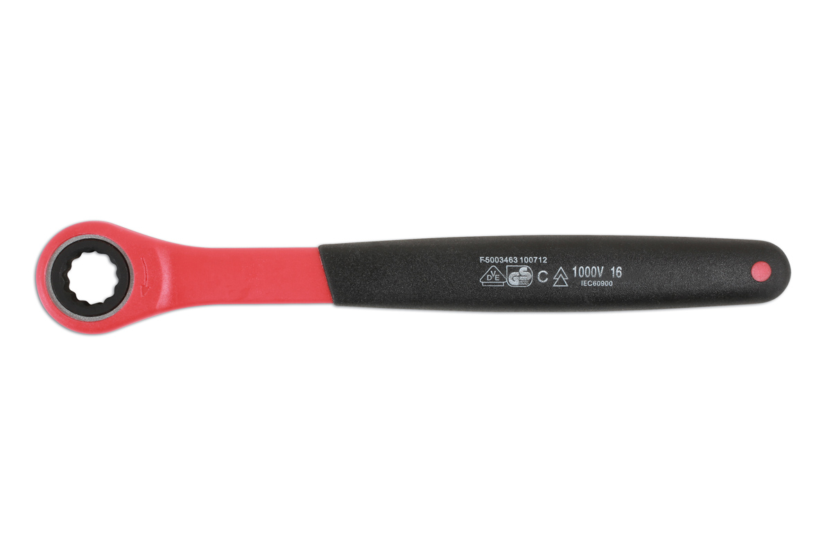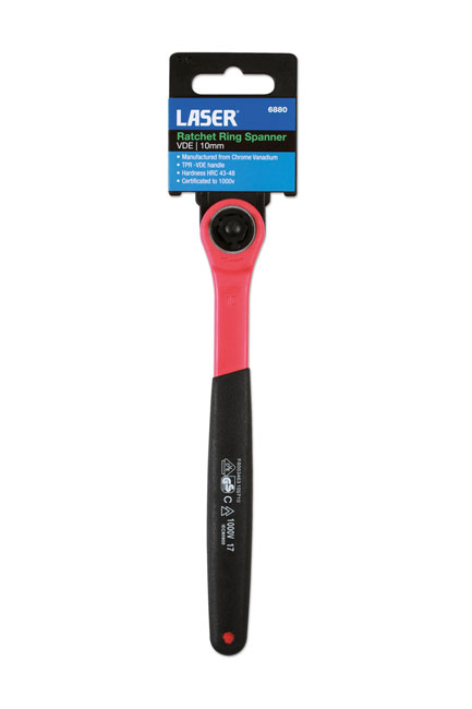 Insulated, VDE certified ratchet ring spanner 10mm, to IEC60900 standards for 1000vAC/1500vDC live working.
