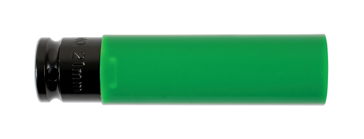 Extra long wheel nut socket manufactured from Chrome Molybdenum with protective sleeve 21mm x 130mm