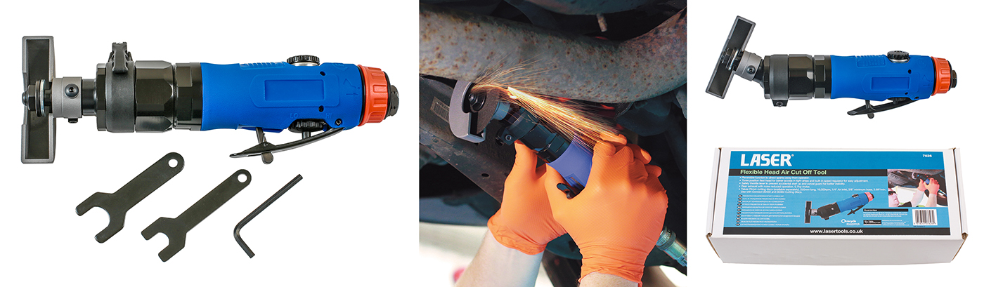 Need to easily cut automotive body panels or sheet metal? Quickly remove exhaust pipes and clamps? Then reach for this new professional-quality air cut-off tool from Laser Tools (part number 7626) — the cut-off tool that really has been designed with the operator in mind.