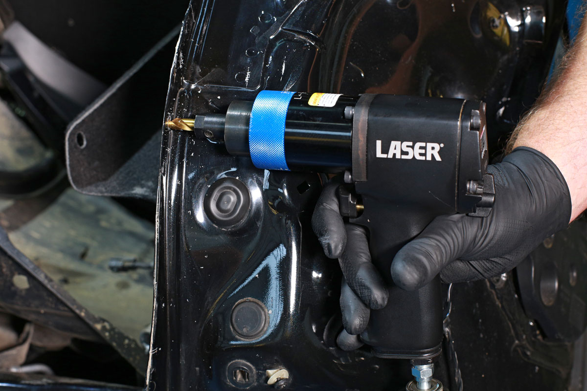 This new air-powered spot weld drill from Laser Tools (part number 7682) is specifically designed for spot weld cutting, speeding up the task and providing repeatability and consistency of the depth of cut. This is a compact but powerful spot weld drill that is powered from the workshop compressed air supply and suitable for automotive workshop applications.