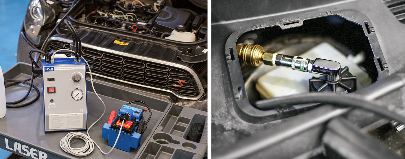 - For maximum portability, this brake bleeder has been designed to be used with a 5L brake fluid container (included). For a fluid catch bottle, see Laser Part No. 6592.