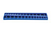 Steckschlüsseleinsatz-Schiene zur Aufbewahrung von bis zu 26 Steckschlüsseleinsätzen mit 1/4"-Antrieb mit einfach zu bedienendem Dreh- und Verriegelungsmechanismus, der die Steckschlüsseleinsätze sicher in Position hält. Die weiche, rutschfeste Gummirückseite verhindert ein Verrutschen der Schiene; ideal für die Aufbewahrung in Schubladen.