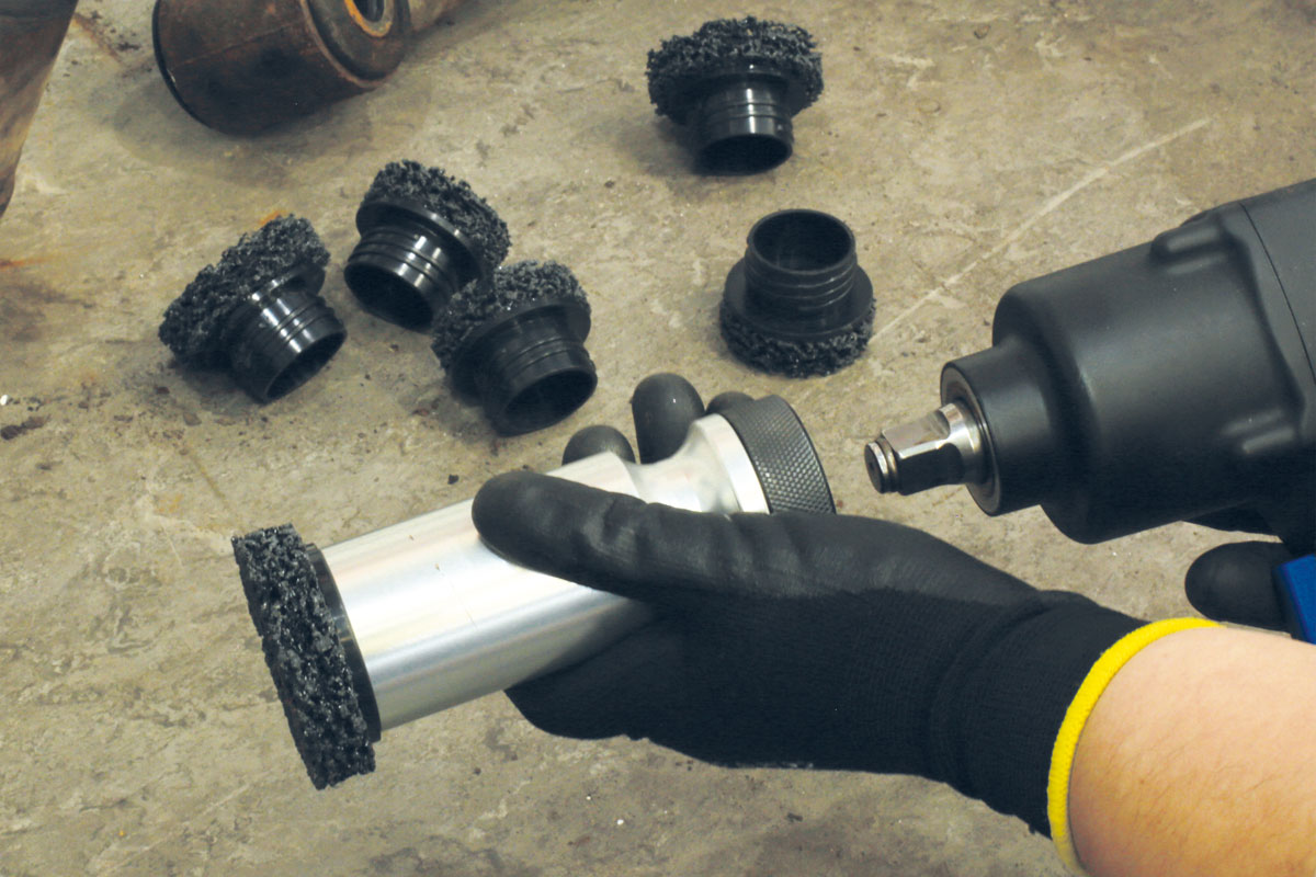 A universal stud and hub cleaning tool kit suitable for use on wheel studs up to 28mm in diameter, to remove corrosion and dirt in preparation of refitting the wheels to the vehicle. It features a 1/2" square drive, enabling it to be fitted to the same impact wrench/air gun that was used to remove the wheel nuts (only requires light contact pressure for best results). Suitable for use on larger cars, 4x4s, vans and HGV.