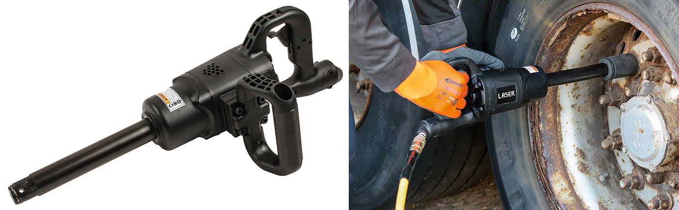 A composite outer bodied 1" drive air impact wrench, with extended anvil (output shaft) for recessed wheel nut access and user convenience, much lighter in weight than other industry models. These features make it much more user friendly, and less tiring to use, ensuring optimum health and safety for the worker. Ideal solution in HGV wheel replacement, vehicle repair, fleet maintenance, heavy plant, construction and agriculture.